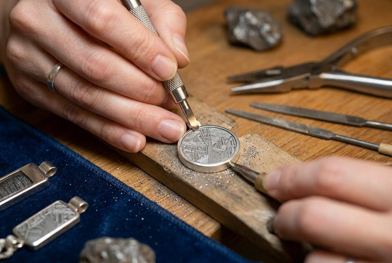Meteoritschmuck entsteht in mehreren aufeinander abgestimmten Arbeitsschritten: