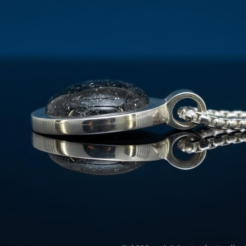Jedes Schmuckstück entsteht aus echtem, nachweislich außerirdischem Material, kombiniert mit hochwertigem Edelmetall und handwerklicher Präzision.
