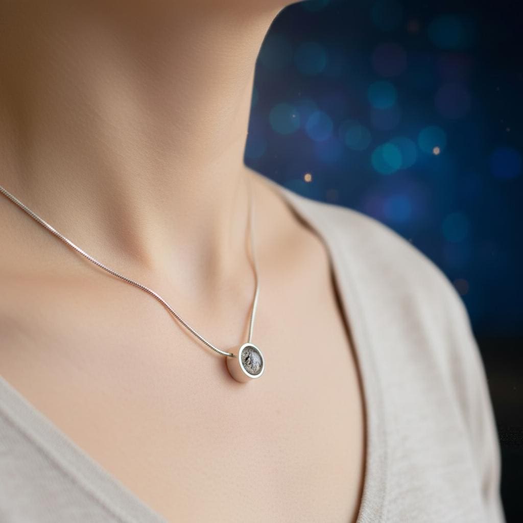 Kompaktes Amulett aus 925 Silber mit echtem Meteoritenstaub.